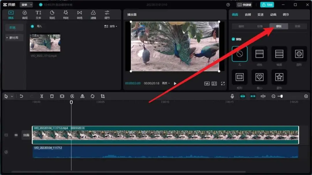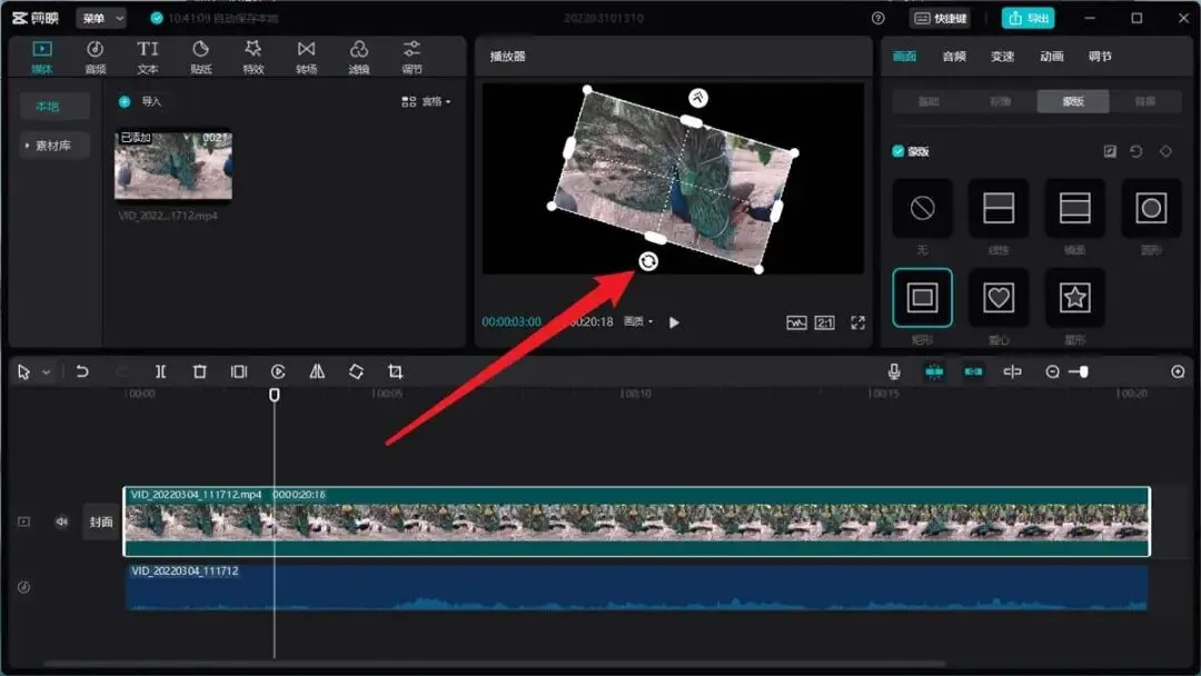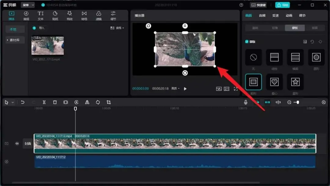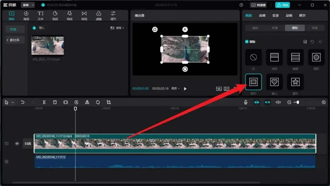 然后在蒙版中点击矩形蒙版,为素材添加矩形蒙版。