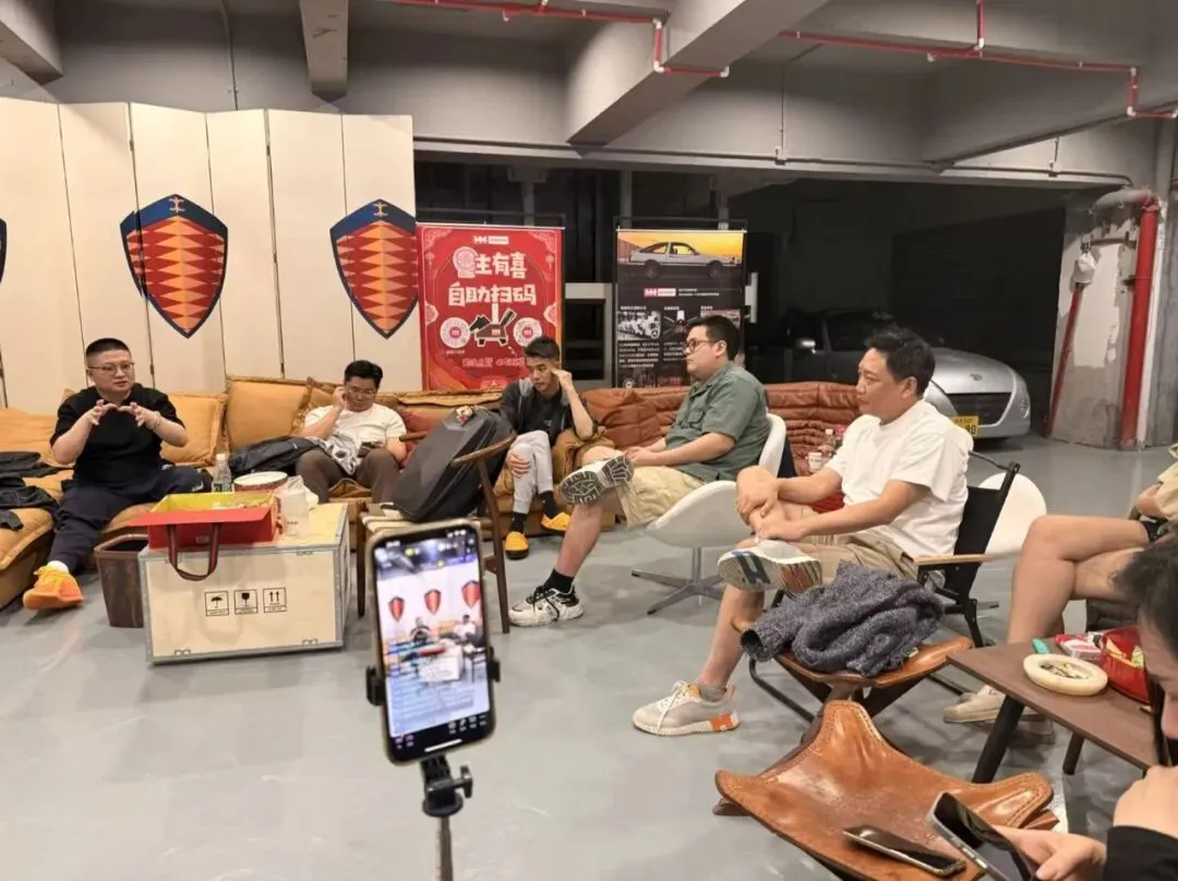 沙发区变身深度圆桌:几位资深玩家围坐,手势乱飞,聊从首届到现在踩过的坑、迭代的思路。背景是熟悉的OpenClaw海报+各种潮牌元素,技术烟火气拉满。