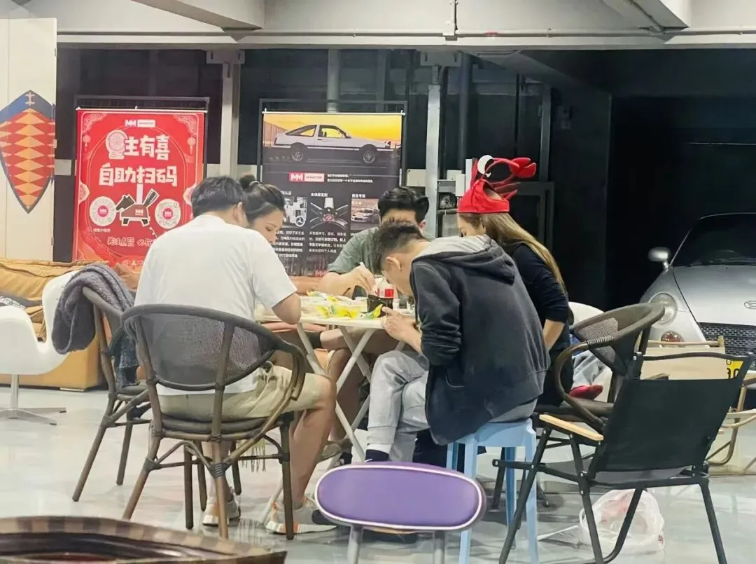 吃喝玩乐环节也没落下。大家围小桌吃炸鸡、薯片,有人戴龙虾帽cosplay,有人边吃边调试Agent,整个空间像AI创业者的深夜趴体。