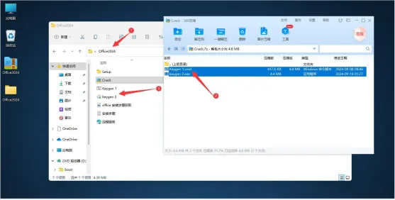 5. 回到Office2024文件夹,把Crack压缩包文件解压出来!