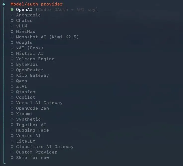 OpenClaw 的初始化过程会问你几个问题,这些选择决定了后续的使用方式。我们一个个来看。