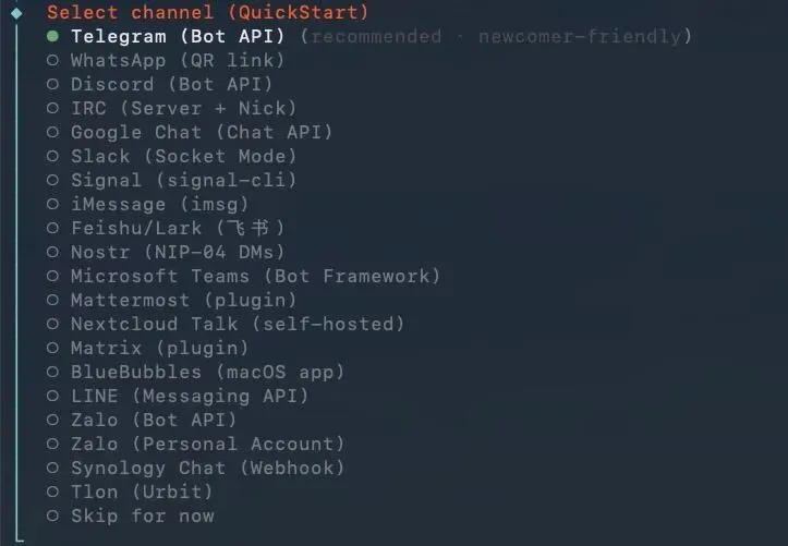最后一个重要选择:你想用什么方式和 OpenClaw 对话?