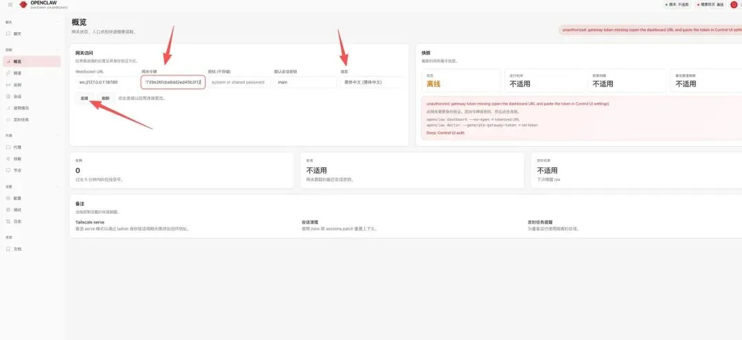 在没有配置好网关令牌的情况下,打开http://127.0.0.1:18789/会看到这样的界面:
