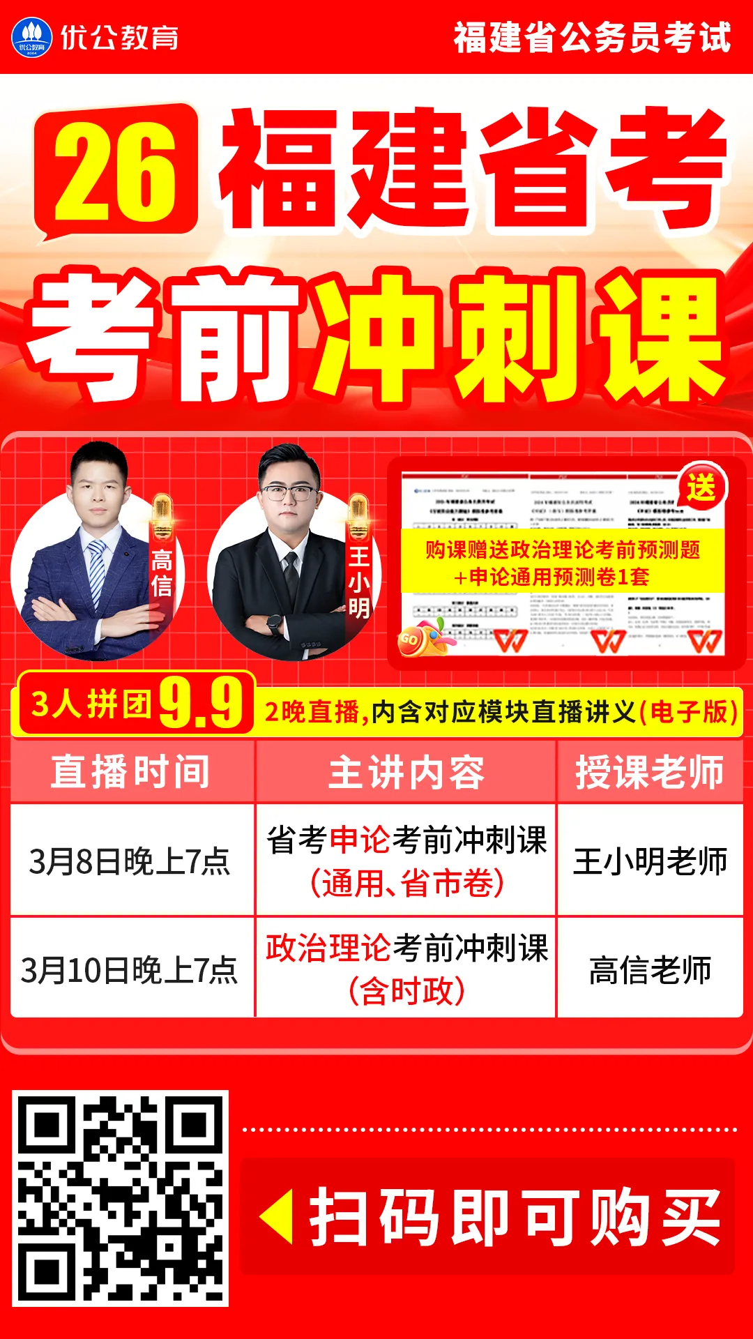 福建省考冲刺直播 ✅3月8日晚上19点:省考申论冲刺课