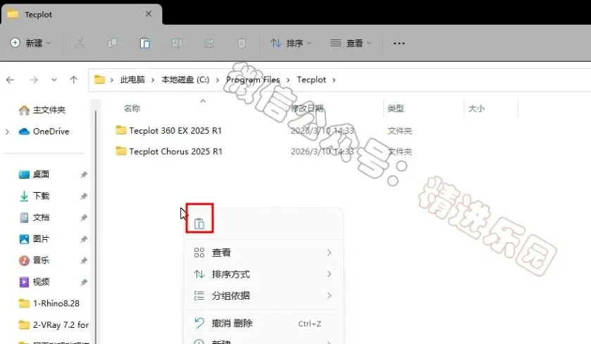 1、下载Tecplot 360 EX 2025R2软件安装包到电脑上,右键选择【解压到当前文件夹】2、找到【tecplot360ex2025R2】应用程序,右键选择【以管理员身份运行】它3、点击【Next】4、点击【Next】5、点击【I Agree】6、点击【Next】7、可自定义更改软件安装位置,这里小编选择默认安装在C盘;点击【Install】7、软件安装中,稍等片刻8、点击【Finish】9、回到Tecplot 360 EX 2025R2文件夹,找到【Crack】文件夹,右键【打开】它10、选中全部文件夹,再右键点击【复制按钮】11、回到桌面,右键桌面上的【Tecplot 360 EX 2025R2软件图标】,点击【打开文件所在的位置】12、点击路径上的【Tecplot】13、右键文件夹的空白处,点击【粘贴按钮】14、点击【替换目标中的文件】15、回到桌面,右键桌面上的【Tecplot 360 EX 2025R2软件图标】,点击【打开】16、软件启动中17、软件打开成功,运行界面如下: