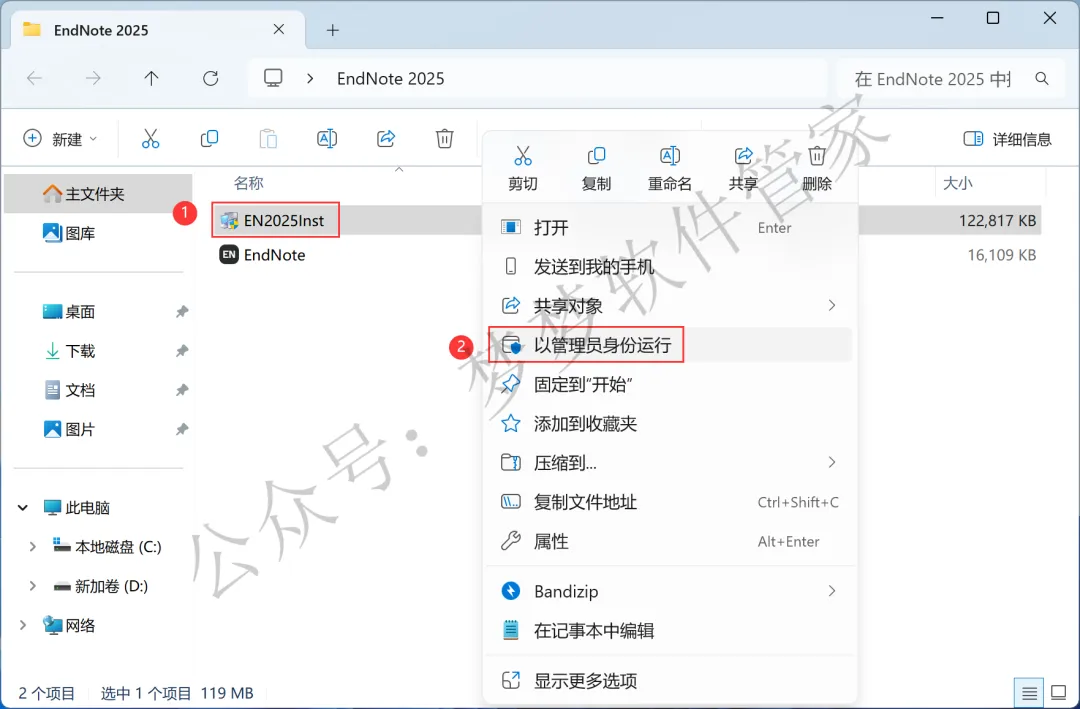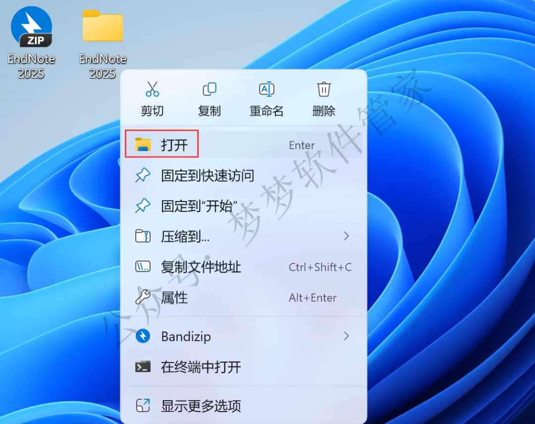 1、下载EndNote 2025软件安装包到电脑上,右键选择【解压到EndNote 2025\】