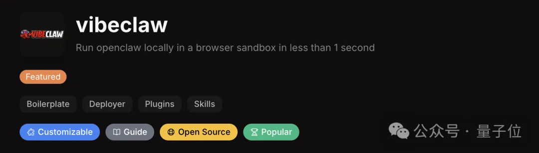 排在第四位的vibeclaw就更极限了,号称可以1秒内在浏览器沙箱中本地运行OpenClaw。