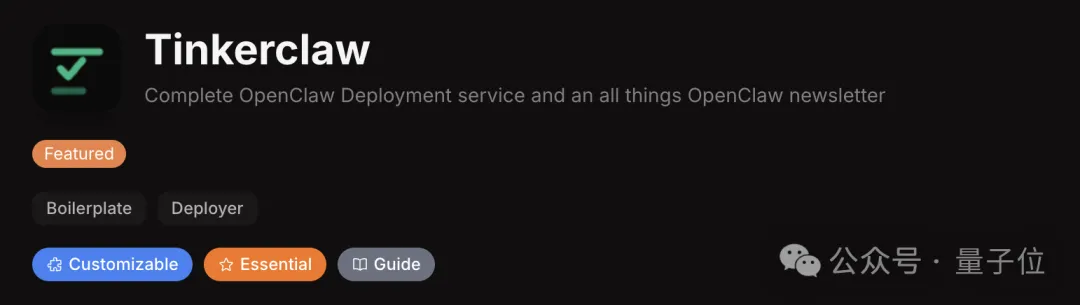 关于Tinkerclaw的介绍比较详细。据称,这是一款一站式服务平台,旨在帮助创业者与团队零技术门槛地部署、管理并扩展其OpenClaw AI助手。