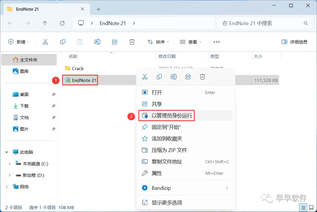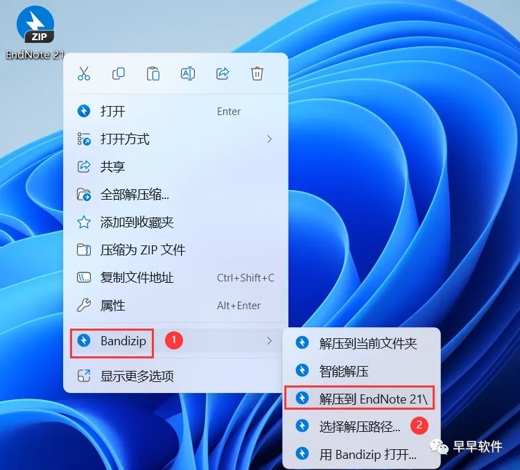1、下载EndNote 21软件安装包到电脑上,右键选择【解压到EndNote 21\】