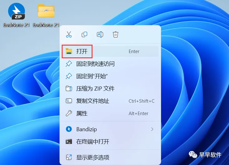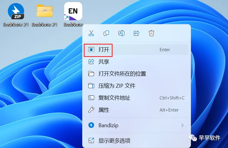 21、右键桌面上的【EndNote软件图标】,点击【打开】