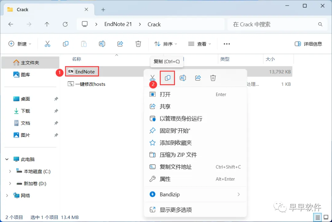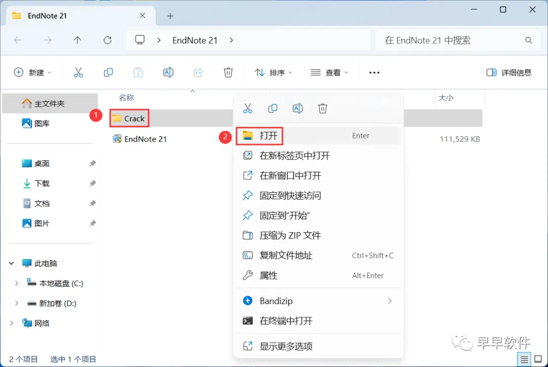 14、回到EndNote 21文件夹,找到【Crack】文件夹,右键【打开】它