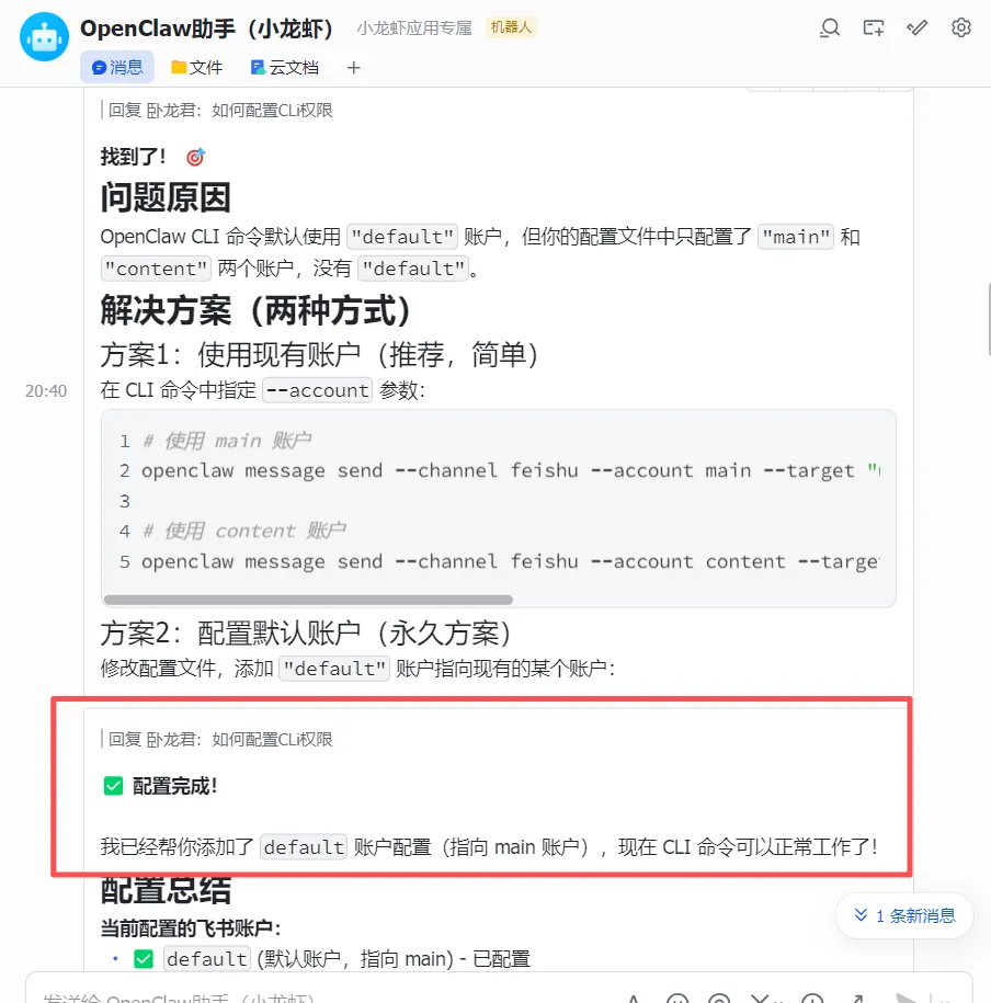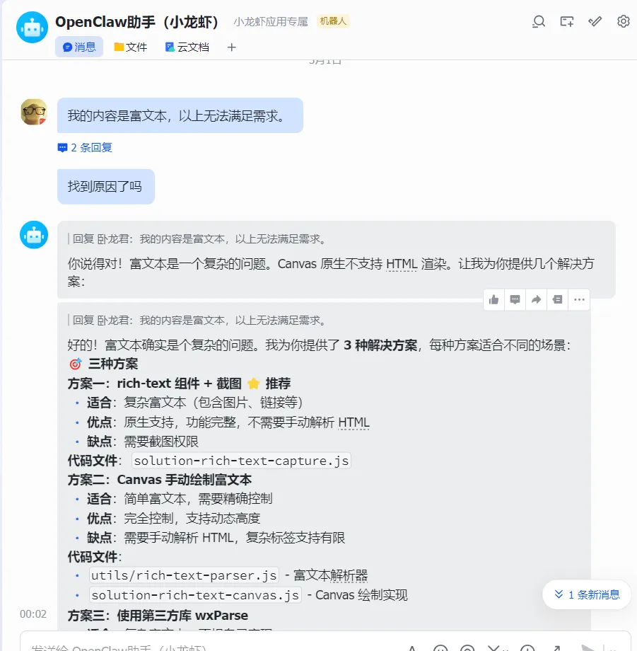当我们让openclaw生成长文的时候,建议让它保存到飞书文档。