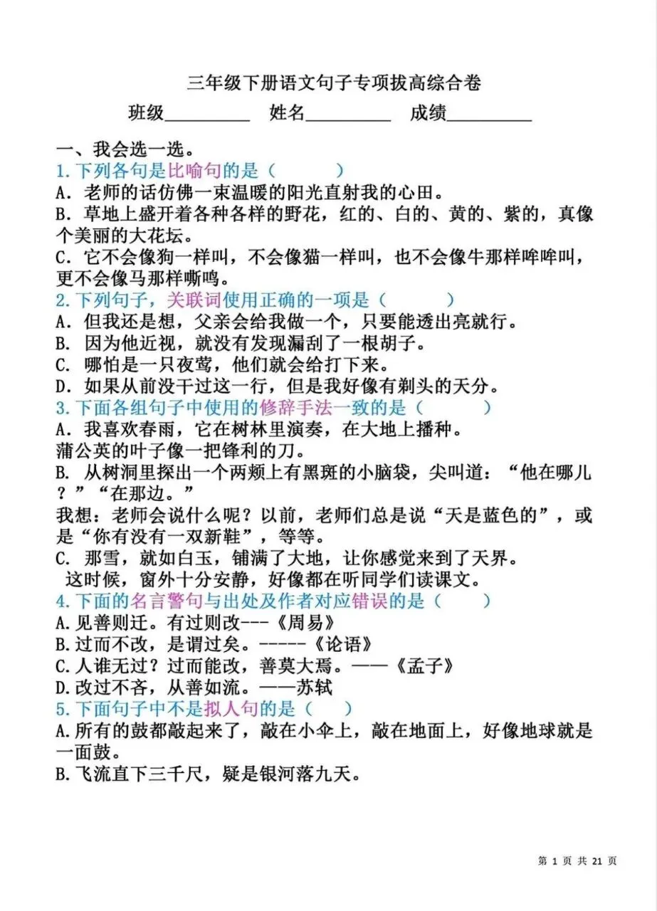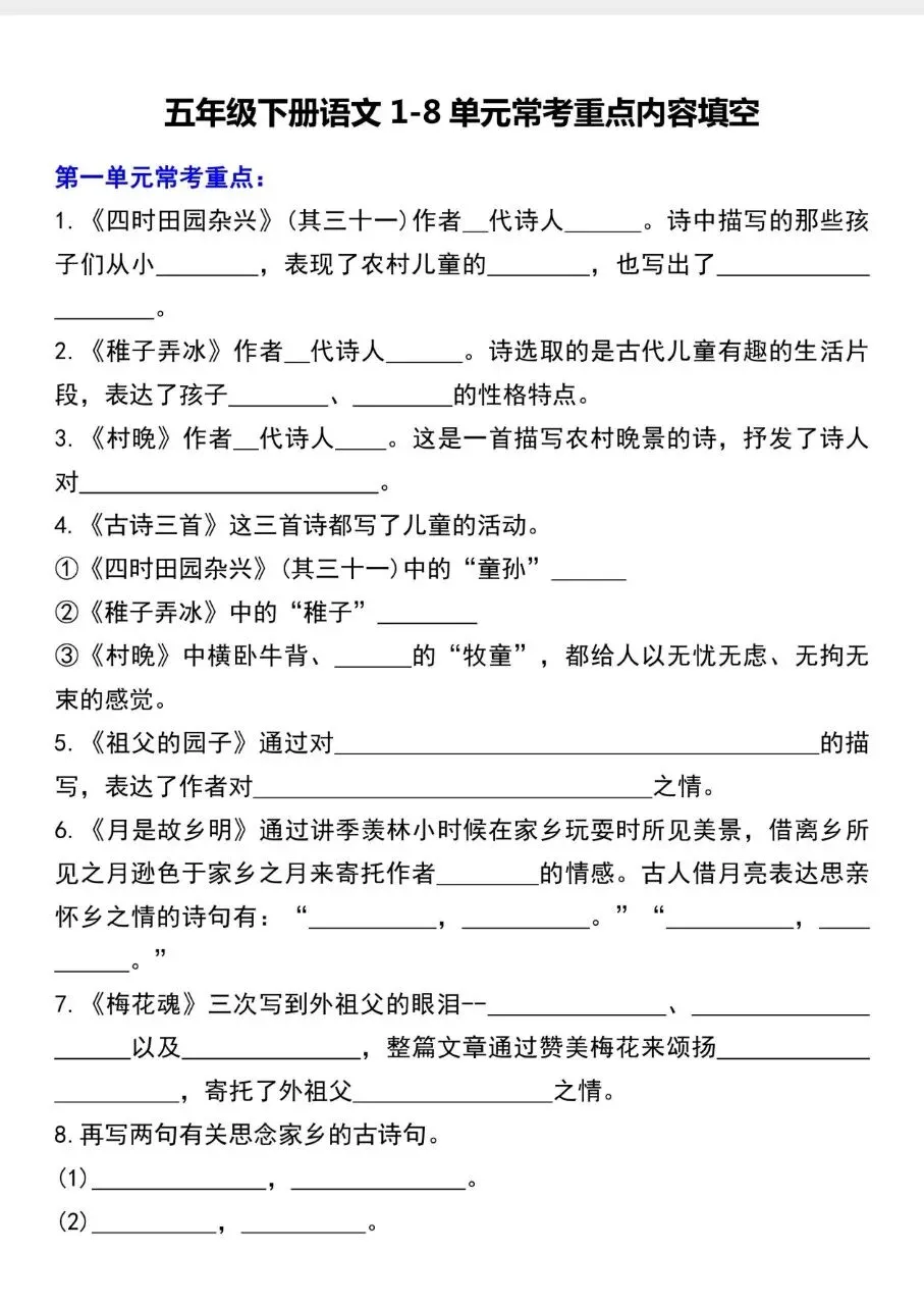 1-6年级语文下册专项练习,材料来自网络。文末有免费下载链接,自取。复制链接,打开夸克网盘即可。