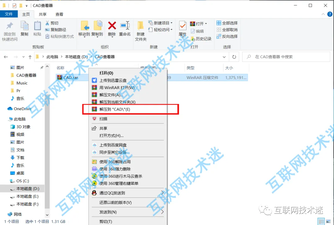 | 1.将下载后的压缩包单击鼠标右键进行解压。