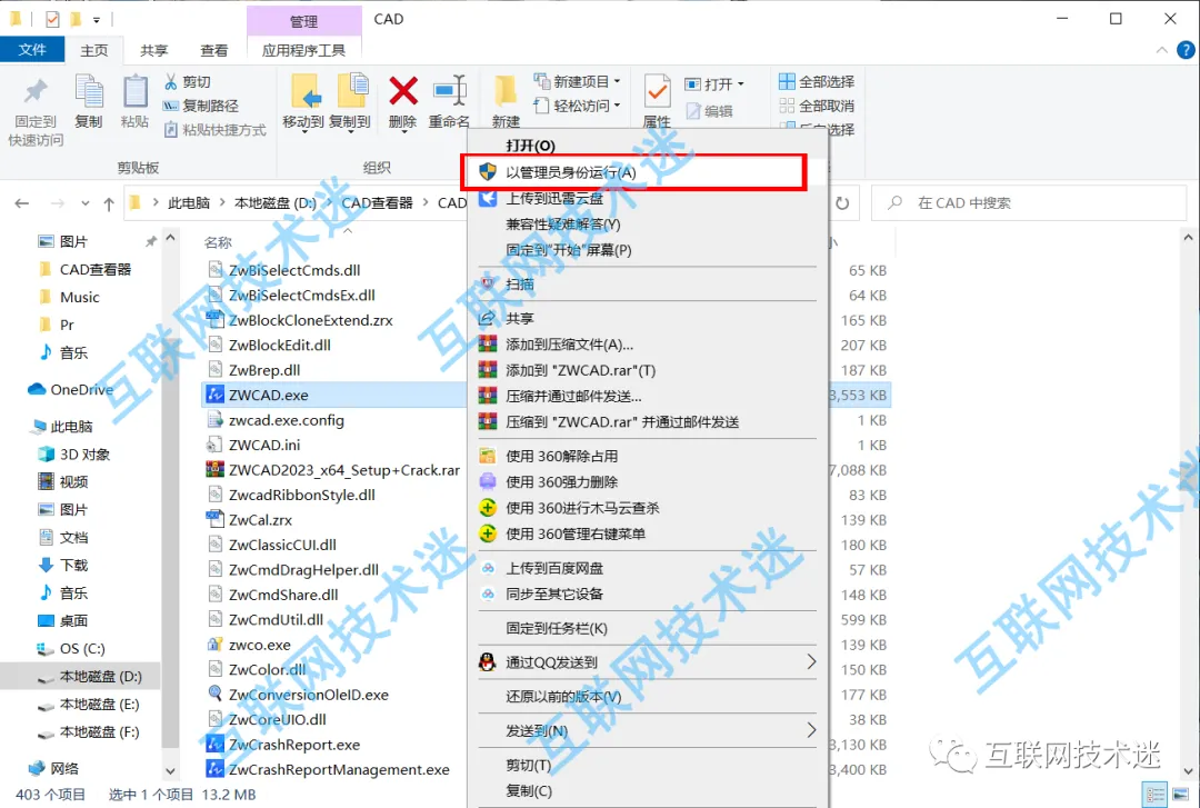 2.打开解压后的文件夹,点击以管理员方式运行DWGView.exe。