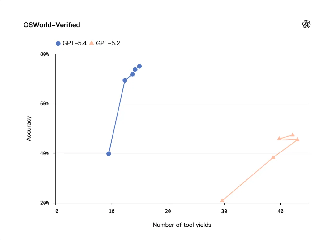 OpenAI说,GPT-5.4是他们第一个内置原生计算机使用能力的主线模型。