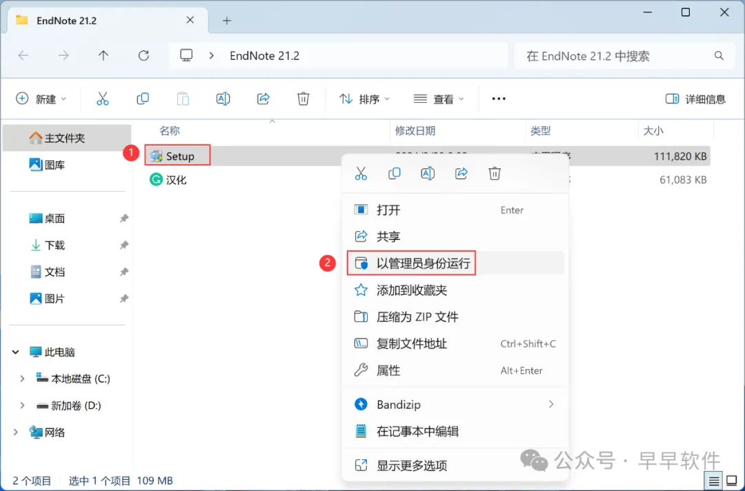 1、下载EndNote 21.2软件安装包到电脑上,右键选择【解压到EndNote 21.2\】