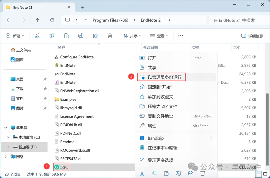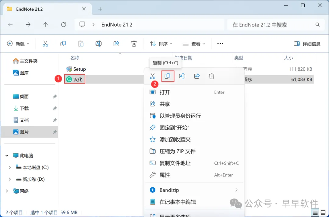 13、回到EndNote 21.2文件夹,找到【汉化】程序,右键点击【复制按钮】