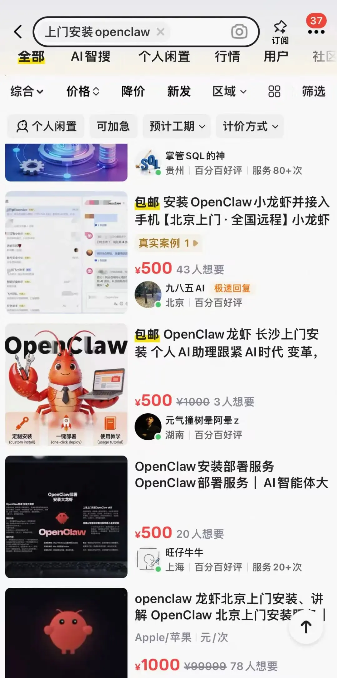 就在几天前,“上门安装OpenClaw”还是二手平台上的香饽饽生意,单次报价从500元到上千元不等