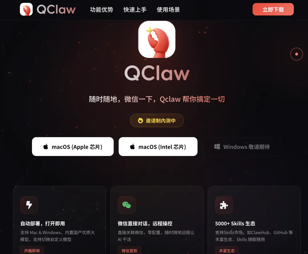 产品地址:https://claw.guanjia.qq.com/