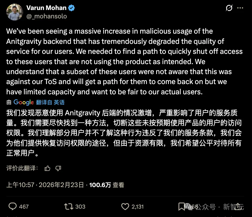 执行此次封禁的 Varun Mohan 此前带着自己的团队并入谷歌 DeepMind,一手搭起了今天的 Antigravity 平台。