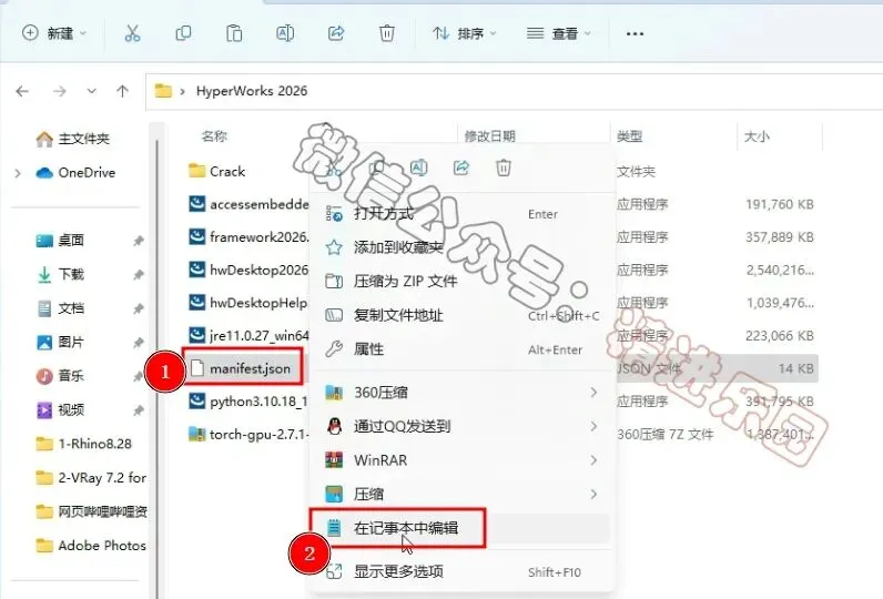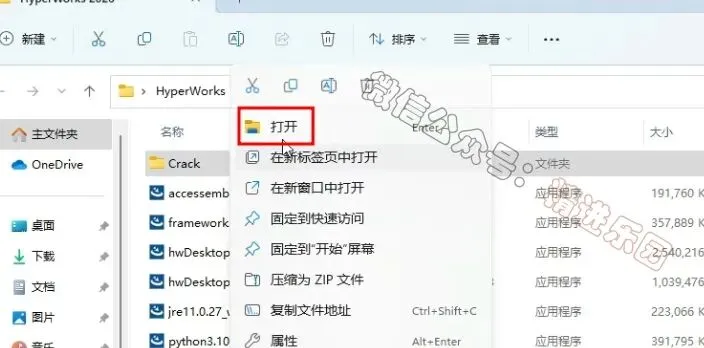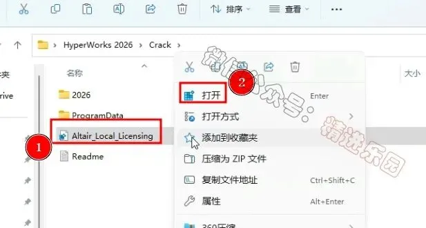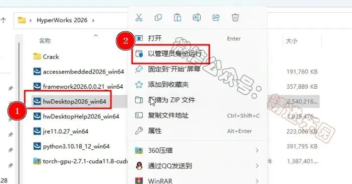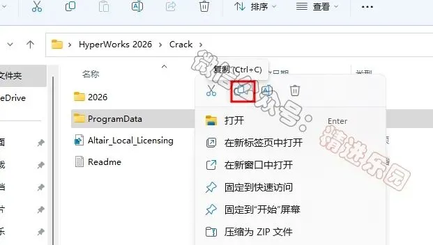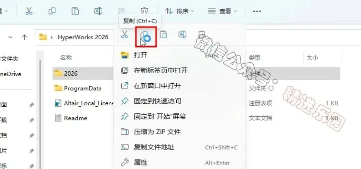 1、下载HyperWorks 2026软件安装包到电脑上,右键选择【解压到当前文件夹】3、找到【ProgramData】文件夹,再右键点击【复制按钮】5、回到Crack文件夹,找到【Altair…Licensing】文件,再右键点击【打开】8、找到【hwDesktop2026_win64】应用程序,右键选择【以管理员身份运行】它9、点击【OK】