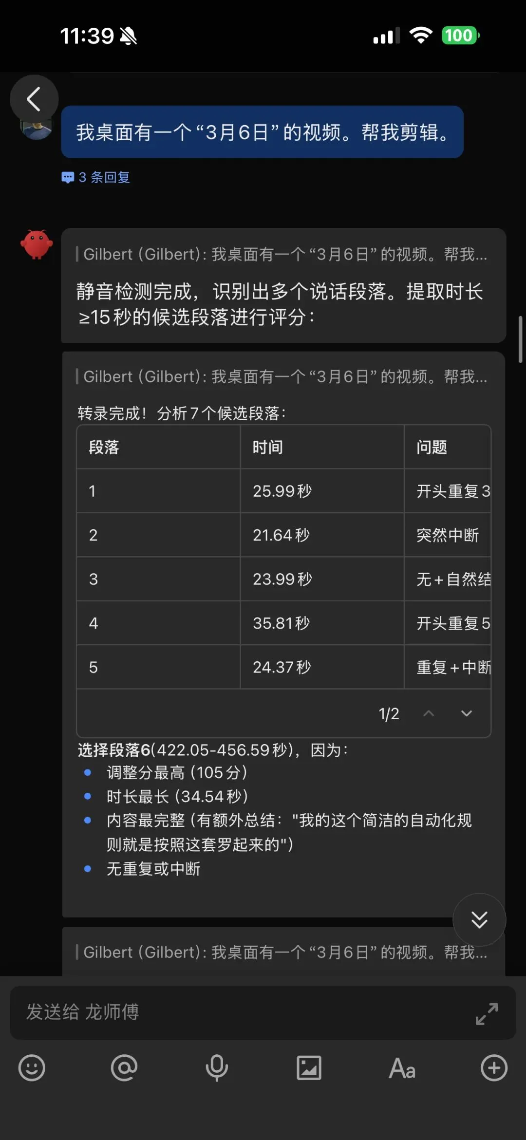 Gilbert,产品经理,做了个剪辑虾叫龙师傅。让龙虾当你的视频剪辑助理。