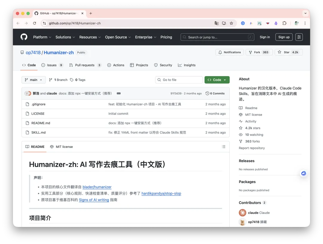 Humanizer-zh,把 AI 生成的文本去掉"AI味",让它读起来像人写的。