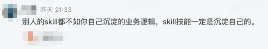 飞书官方插件体验群里有个哥们说了句特别到位的话:"别人的 skill 不如自己沉淀的业务逻辑,技能一定要沉淀自己的。"