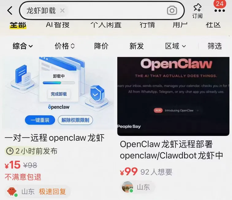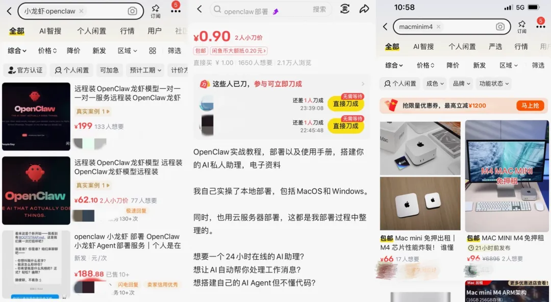 打开二手交易平台,搜索“OpenClaw”“养虾代部署”,相关的服务链接密密麻麻,价位从几十元到数百元不等,服务内容涵盖“远程安装”“本地部署”“API密钥配置”“技能包导入”等多个方面。其中,基础的远程安装服务标价多在50-100元,而包含云端部署、技能定制的全套服务,标价甚至超过500元。有闲鱼卖家透露,自OpenClaw爆火以来,自己每天能接到几十单订单,“下单需要排队30分钟以上”,仅3天时间成交额就突破3000元,不少互联网程序员利用下班时间接单,日均收入可达500元以上,部分专业的技术团队,甚至专门推出了“OpenClaw部署套餐”,月收入轻松过万。