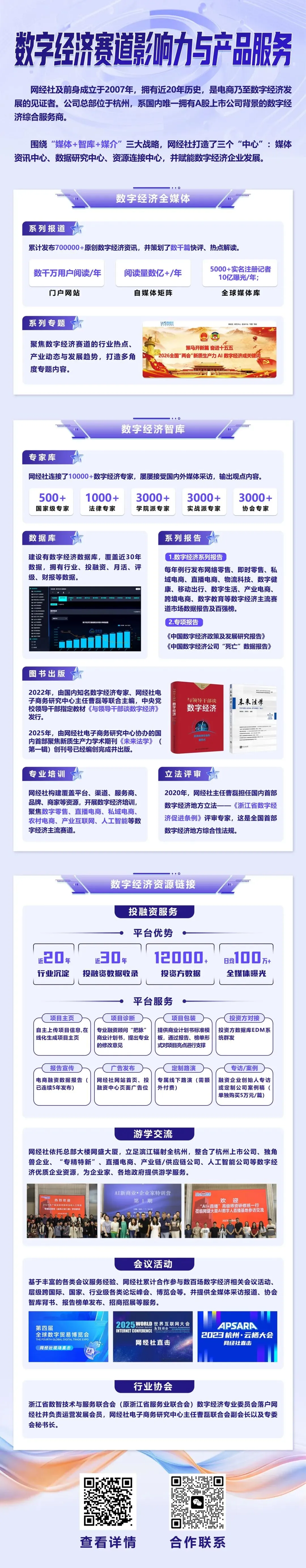 网经社及前身成立于2007年,公司总部位于杭州,系国内唯一拥有A股上市公司背景的数字经济综合服务商。围绕“媒体+智库+媒介”三大战略,网经社打造了三个“中心”:媒体资讯中心、数据研究中心、资源连接中心,并赋能数字经济企业发展, 提供全媒体宣传、智库赋能(报告、培训、游学等)、投融资、会议活动等服务。