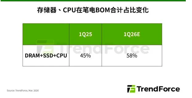 这场由AI引发的存储芯片涨价潮,并非只影响手机行业,与之关联紧密的电脑领域,也逃不过涨价的命运。 集邦咨询最新数据显示,2026年第一季度DRAM(动态随机存取存储器)合约价环比暴涨90%-95%,NAND Flash(flash存储器的一种)涨幅也达到55%-60%,而三星、SK海力士等头部厂商将超30%的先进产能转向HBM(高带宽内存),直接导致消费级内存、闪存供给减少20%,笔记本作为存储配置密集型产品,首当其冲地受到影响。 IDC报告显示,2026年整个PC行业将迎来15%-20%的集体涨价,联想、戴尔等主流品牌已陆续发出涨价预警,其中入门级PC的涨价幅度最为明显,4000元以下机型将大幅减少,厂商纷纷放弃低利润的入门级市场,将资源集中在5000-10000元的中端主力市场。销量利润双重冲击行业面临两难考验
