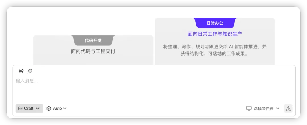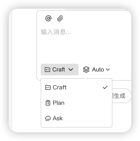 如果你只是想先试试、先问问,那就用 Ask;如果你要做复杂任务的规划,用 Plan;如果你真要让它动手干活,再切到 Craft。
