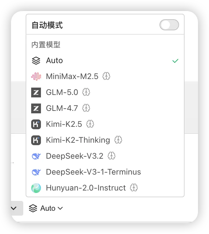 关于模型,不是它列了多少模型名字,而是它把腾讯自家的模型,以及国内一些比较成熟、效果也比较好的模型,都接进来了。这样做的好处很直接:用户不用自己折腾接模型,就能按任务去选更合适的能力。写代码、做分析、处理日常办公,本来就适合不同的模型;对普通用户来说,这比单纯讨论参数更实在,因为它直接关系到效果、速度和成本。