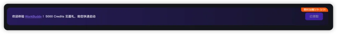 从公开信息来看,WorkBuddy 这次上线阶段确实准备了不少体验福利,比如给国内版用户的 Credits 补贴。对第一次上手的人来说,这种东西很实在——你不用一上来就为“尝鲜成本”犹豫太久,先薅一波再说。