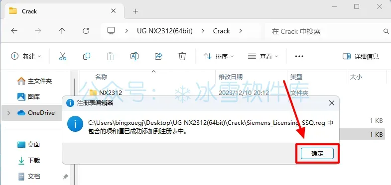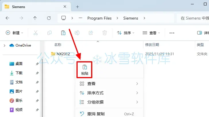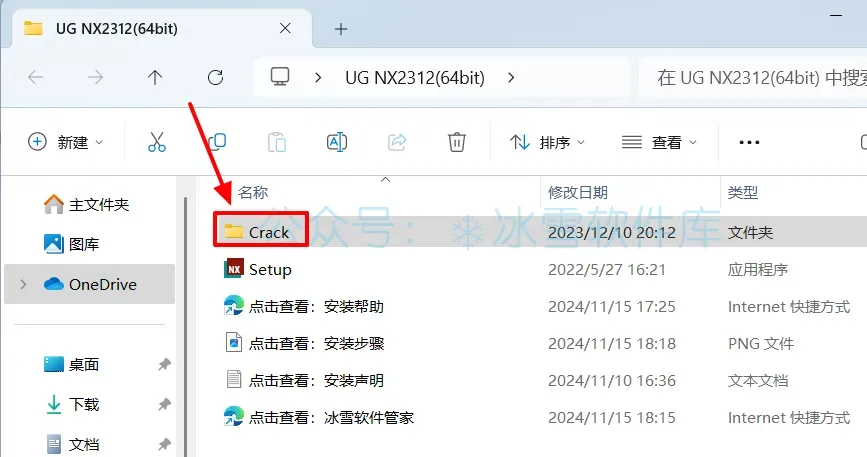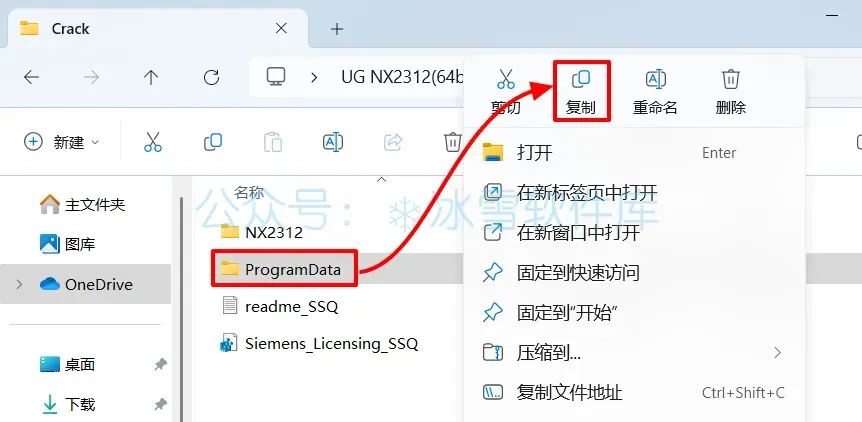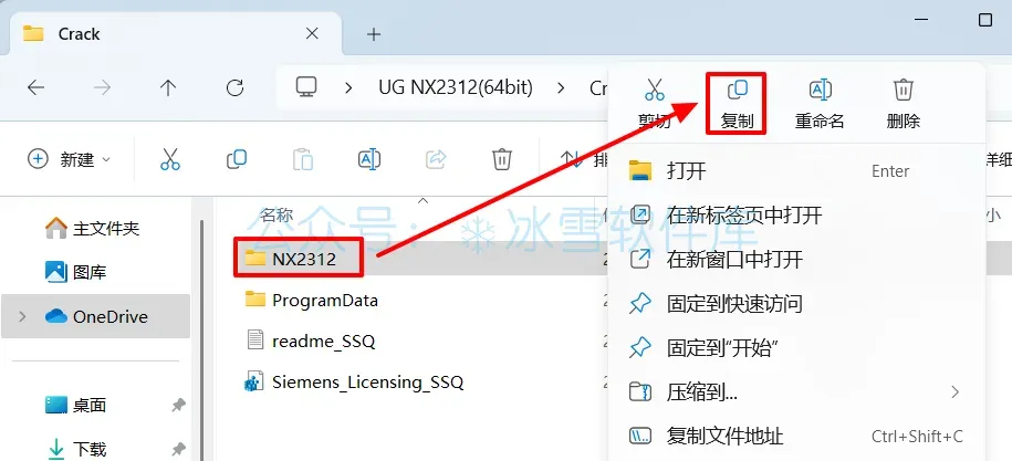 20.回到安装包解压后的【Crack】文件夹,鼠标右击【NX2312】文件夹选择【复制】。