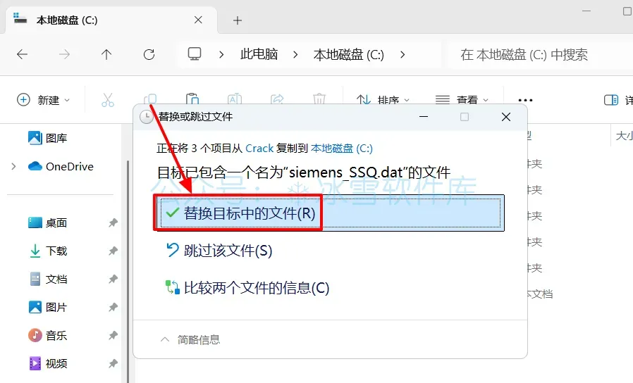25.点击【替换目标中的文件】。