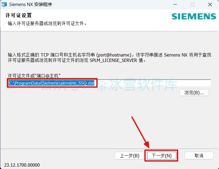14.输入”端口@主机“【C:\ProgramData\Siemens\siemens_SSQ.dat】,点击【下一步】。
