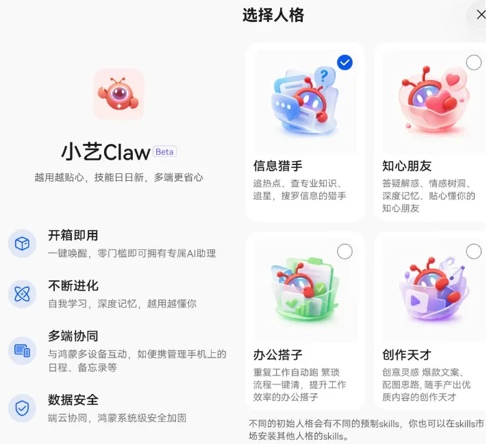华为基于鸿蒙系统推出了“小艺Claw”Beta 版。小艺Claw可以帮助用户处理文档编辑、写PPT、自动回复邮件等任务,支持多端协同,预设多种不同的人格。小艺Claw内核是基于鸿蒙操作系统底座和能力,可实现多设备互联可用。“比如在手机下指令,到PC(个人电脑)上执行。”
