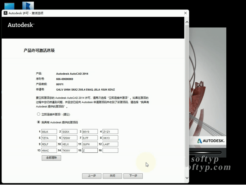 再次点击【激活】➡点选【我具有Autodesk提供的激活码】(保留此页面)