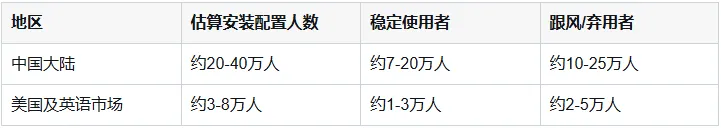 四、真实用户规模: 装机量现象级, 但重度使用者比例很低