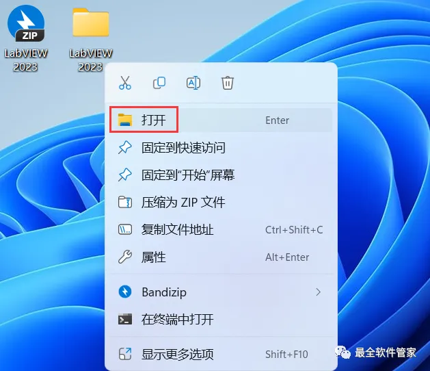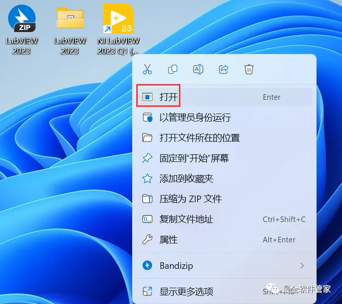 19、右键桌面上的【NI LabVIEW 2023软件图标】,点击【打开】