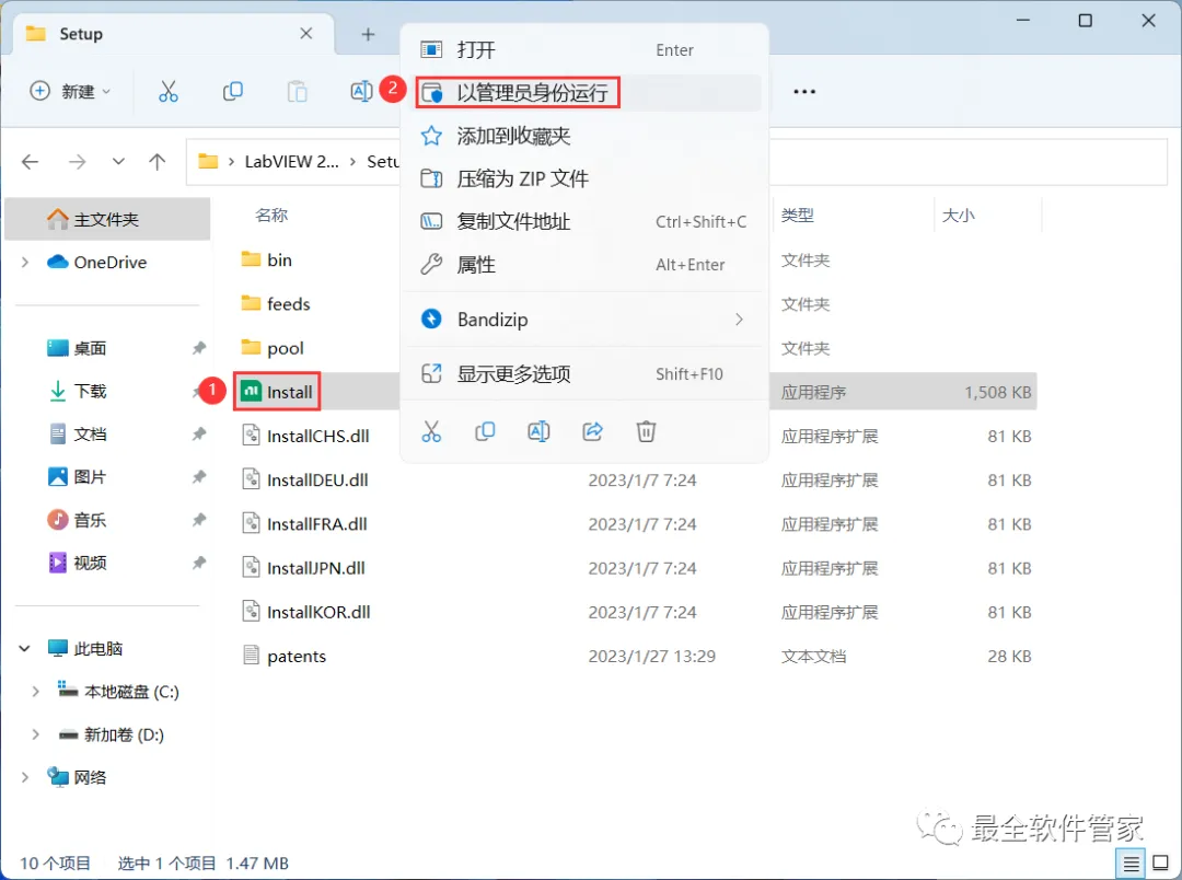 4、找到【Install】应用程序,右键选择【以管理员身份运行】它
