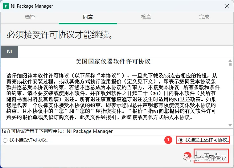 9、勾选【我接受】,再点击【下一步】