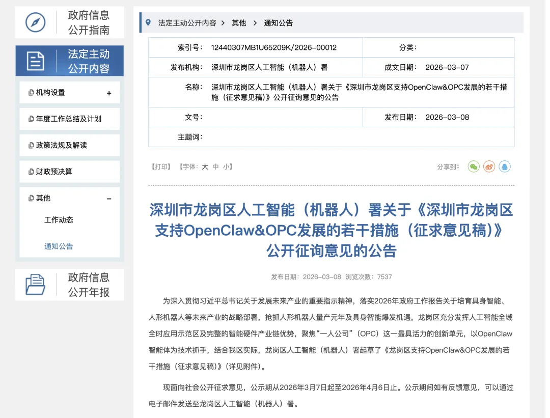上周,深圳龙岗官方发布了《龙岗区关于加快OpenClaw集成应用,打造“一人公司”创业高地的若干措施》(简称“龙虾十条”)。