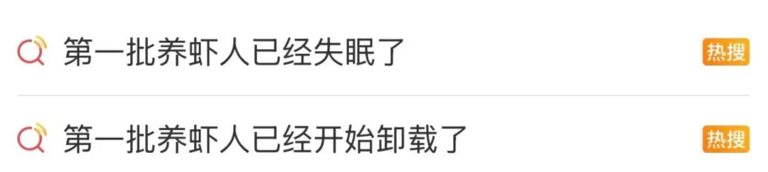 还有,今日相关话题「第一批养虾人已经开始卸载了」「第一批养虾人已经失眠了」,登上了热搜不知道大家有没有关注到。