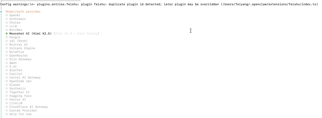 这一步是选择模型,这里我选择的是“kimi 2.5”