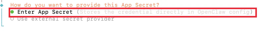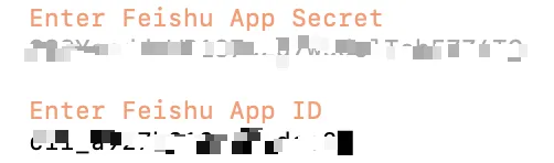 复制飞书应用里获取到的APP ID 和APP Secret,粘贴到终端里