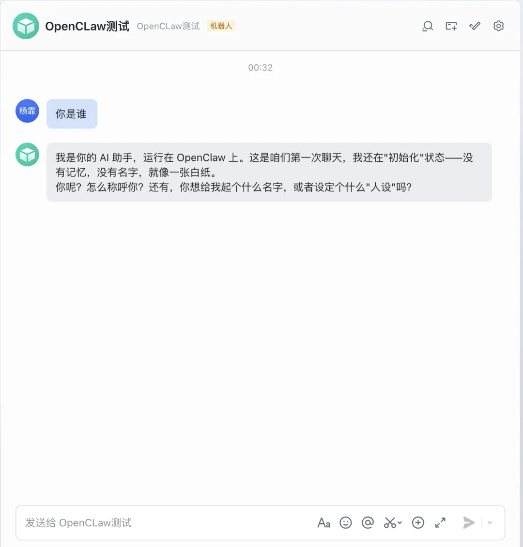 # 第一步:启动网关(核心服务,后台运行)openclaw gateway start --force# 第二步:打开终端交互界面(TUI,操作飞书/AI)openclaw tui