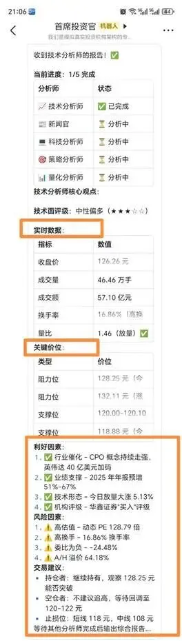 1、技术分析师:实时数据、关键价位、利好因素、风险因素、交易建议。